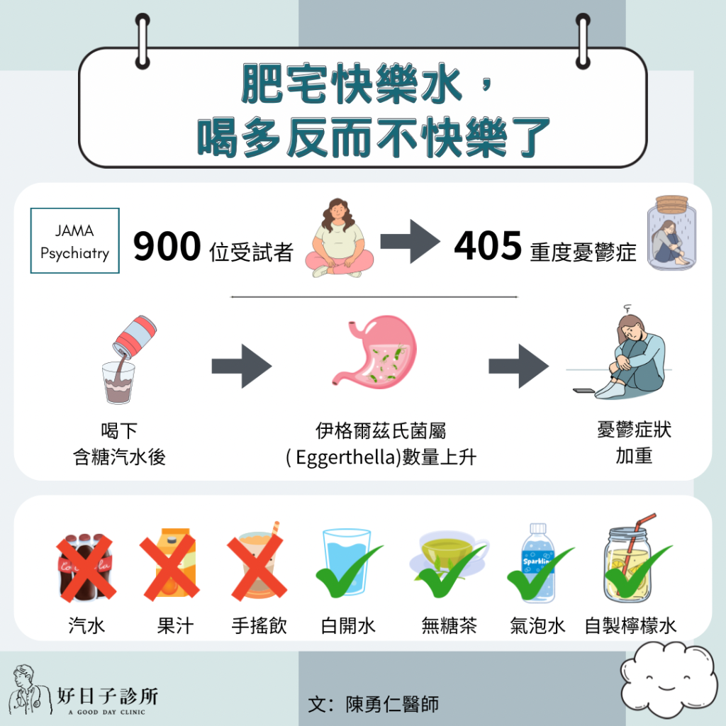 因此,最實際的建議是:應全面減少汽水、果汁與手搖飲的攝取,改喝白開水、無糖茶、氣泡水或自製檸檬水。這不僅有助於控制熱量,更可能保護你的心理狀態與腸道健康。
