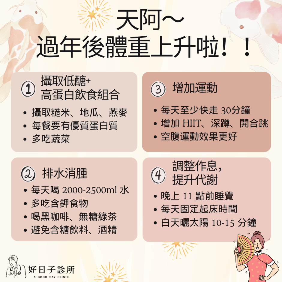 別擔心~過年放縱一下很正常,不用太焦慮!想快速降低體重,可以用以下方法來調整,加速體重恢復的速度~