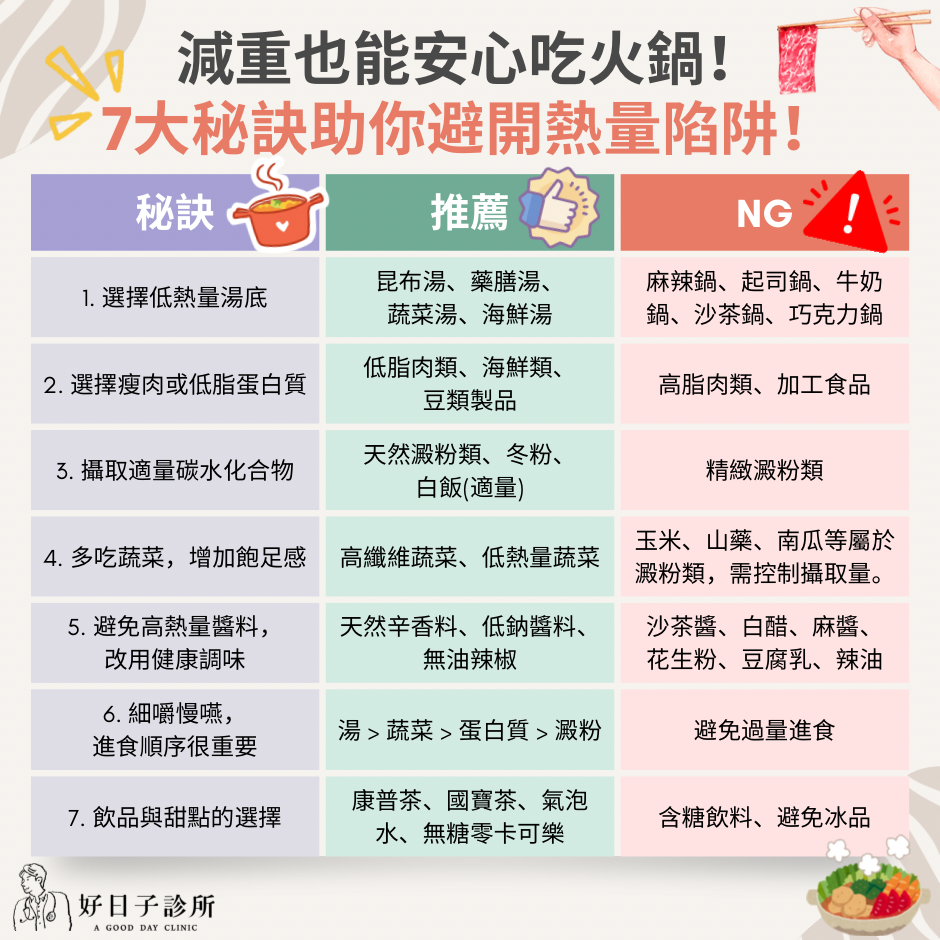 以下提供7 大秘訣,幫助大家在享受火鍋的同時,不必擔心發胖。