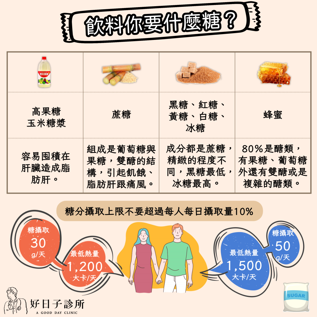 不論是加入哪種糖,過多其實都會對身體造成一樣的負擔,且除了飲料外,其實各種糖類被大量放入製造食品,所以如果飲食內如有部分是加工食品,可能就已經攝取到糖囉。