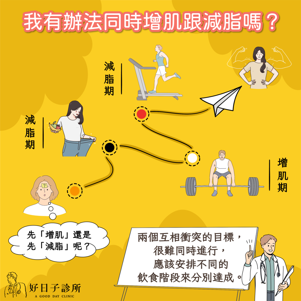 先說結論:「增肌」與「減脂」是兩個互相衝突的目標,很難同時進行,應該安排不同的飲食階段來分別達成。