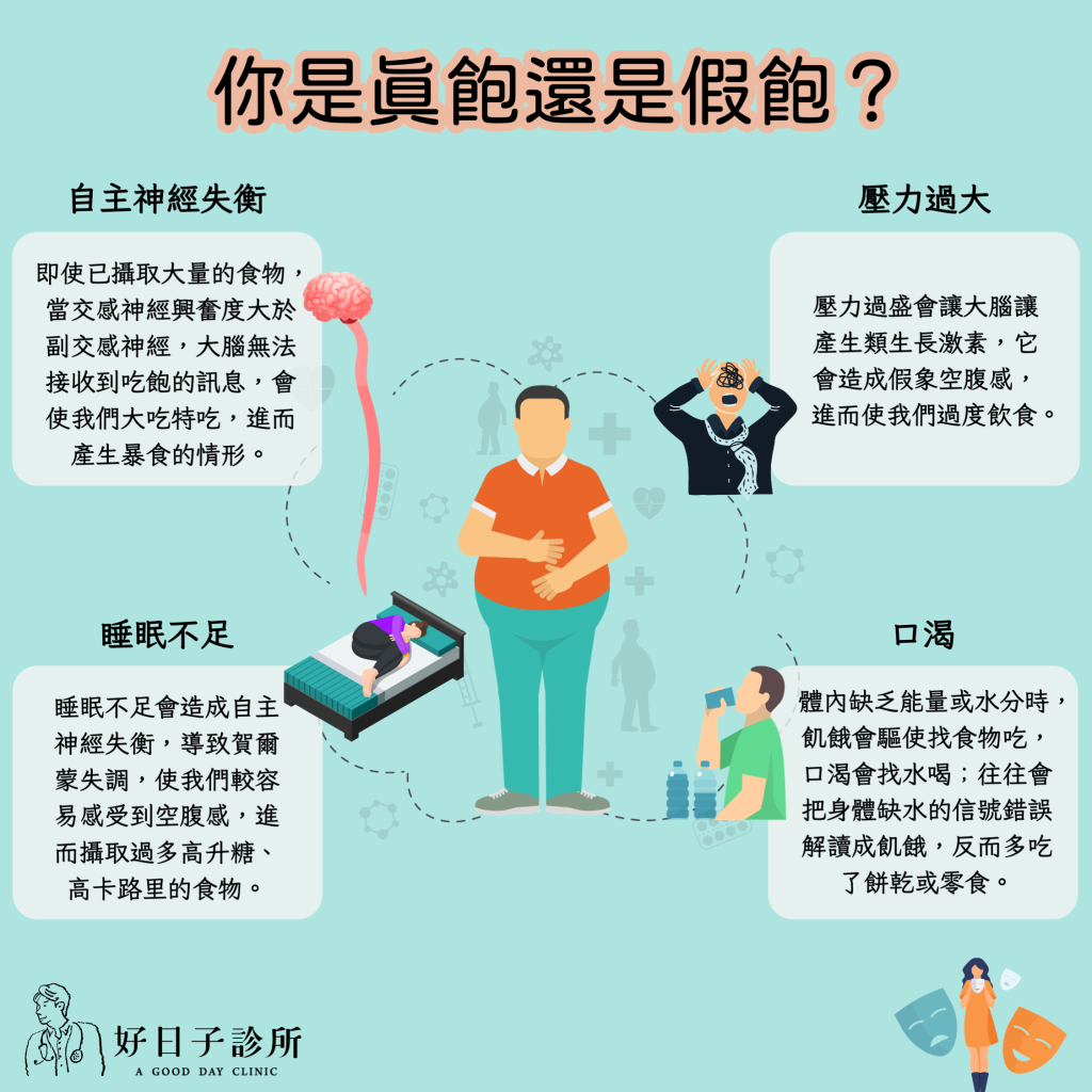 以上,當我們了解假空腹感的成因後,調整自己的飲食習慣與適時的壓力排解,便能達到身心健康以及預防過度進食。