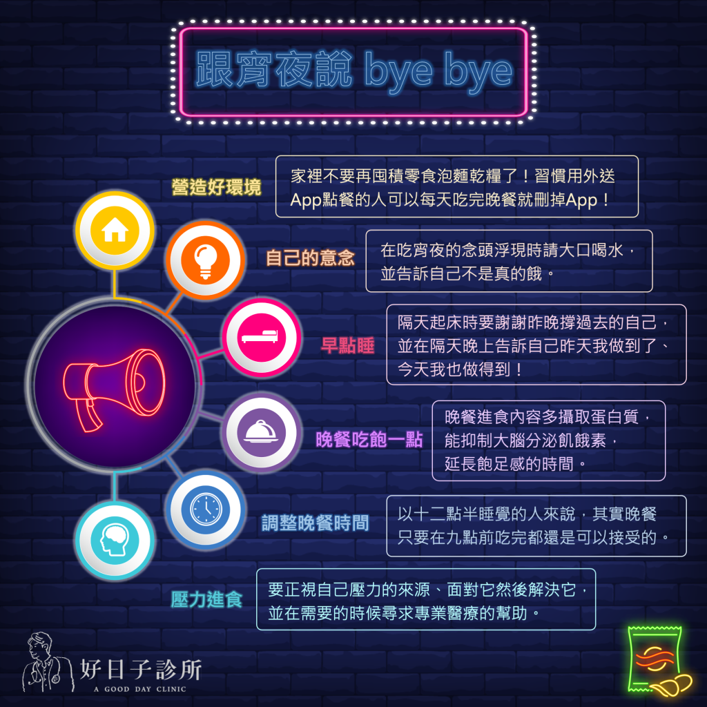 小周醫生整理了三個吃宵夜的主要原因和相對應的作法,一起來跟宵夜說bye bye :