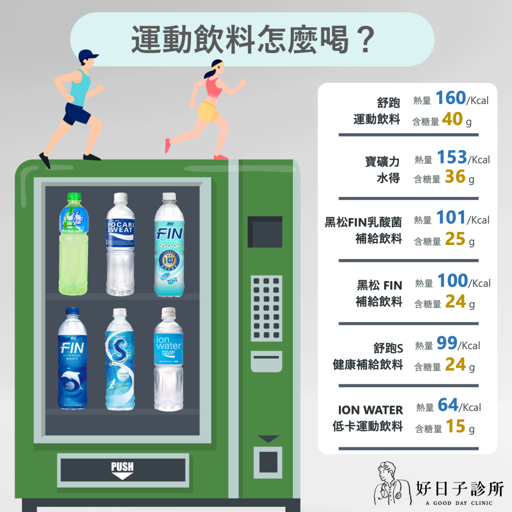 不過如果選擇到糖份高的反而有可能會造成身體脫水加劇,用水稀釋又會造成電解質濃度不夠,此時應直接選低糖分的比較理想。
