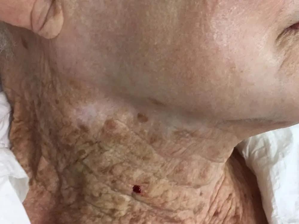 一名紐約皮膚科醫生分享一份歐洲期刊的92歲女士的照片,該女士過去40年來每天都勤擦防曬乳,但只有擦臉,卻沒有擦脖子。